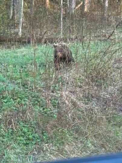 Этот "курва бобер"! Был замечен по дороге в Нарву вдоль озера, утром завтракал возле дороги, спокойно ел, народ ждал мамку 15 минут. Медвеженок закончил завтрак и укшел в лес, мамка не пришла.