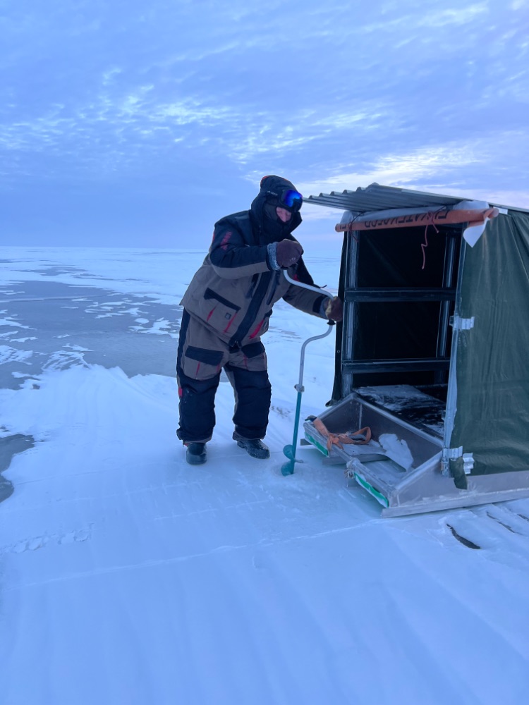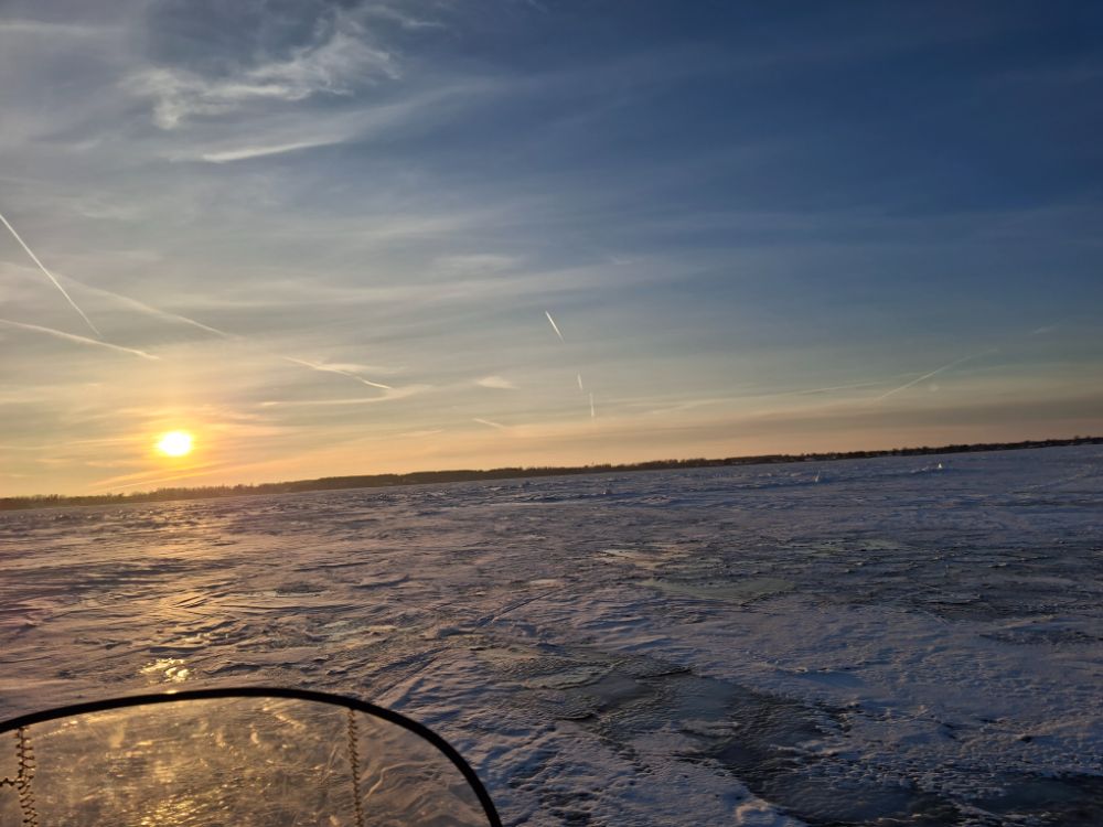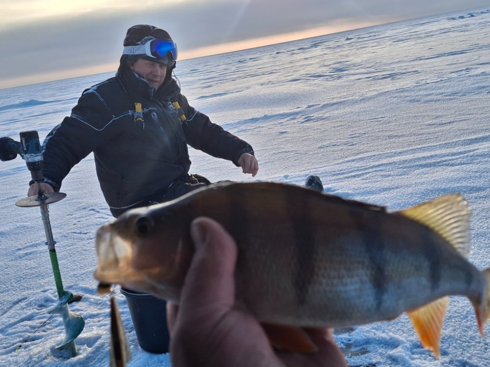 Да уж, рыбалка была точно трудовая, мороз утром -12 и ветер в озере не меньше 8 м/с, который позже ещё усилился.