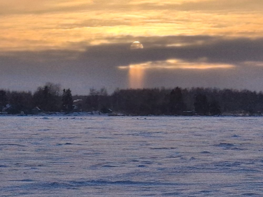 Посетили вчера озеро, погода была значительно комфортнее прошлых выходных, мороз такой же, зато ветер еле-еле. С утра снежок лениво, во второй половине дня прояснило и вылезло солнце. Лёд ещё подрос, снег также один км от берега, потом чем дальше, тем меньше. По рыбе на железо принципиальной разницы не увидел, уловы всё также в штуках, в среднем с десяток... Но, стали проскакивать стайки в 3-5 голов, зато и мелочь появилась.
