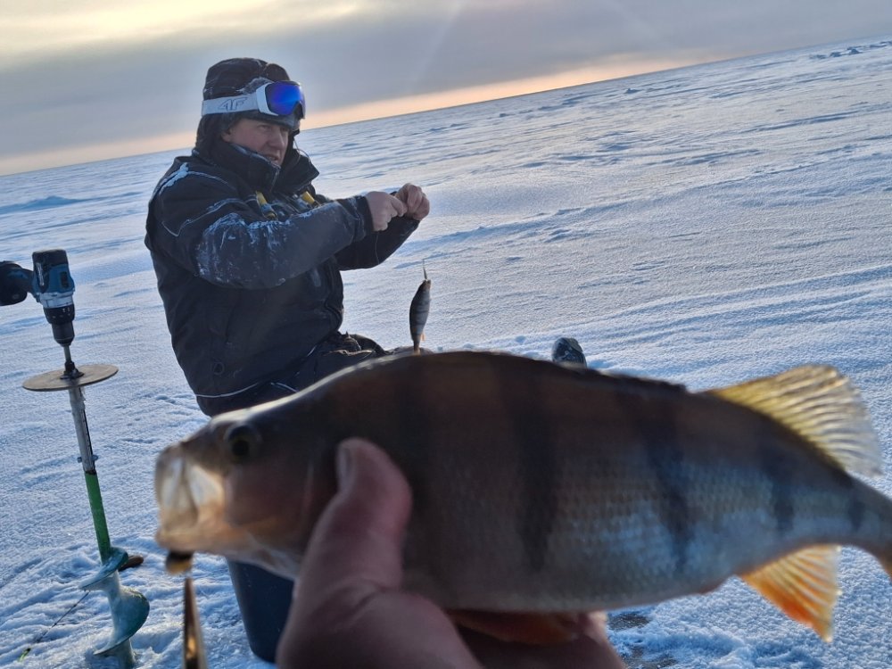 о ожиотажа чтоб за 2 часа взять норму нет , когда клюет на отпускании , тут надо ключик подбирать , только подберешь , тут поджопники , головокруты , стоял один с утра , обсверлили , ушёл в другое место , вроде и лодок нет в округе , но сцуки видят чел стоит , значит ловит , надо к нему подойти , Но охорошо погода радовала , почти штиль , ну рыб был , думал уже лодку доставать на зимнюю стоянку , , но ещё поборюс.