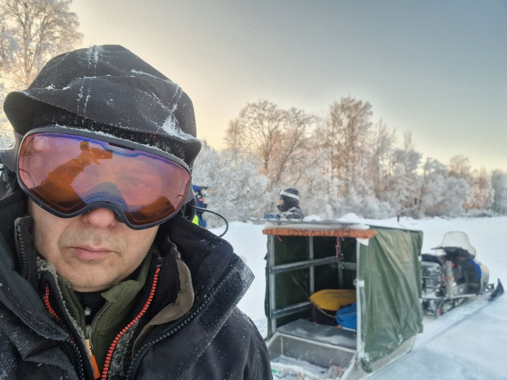 Ну и традиционно, после двух часов рыбка рот закрывает, в три часа можно идти на берег, но мы мы же не за рыбой, а на рыбалку, потому собираться начинаем в четыре часа, тут и мороз давить начинает. Уезжал с озера, за бортом -16.5 было, по дороге местами за -20 зашкаливало.