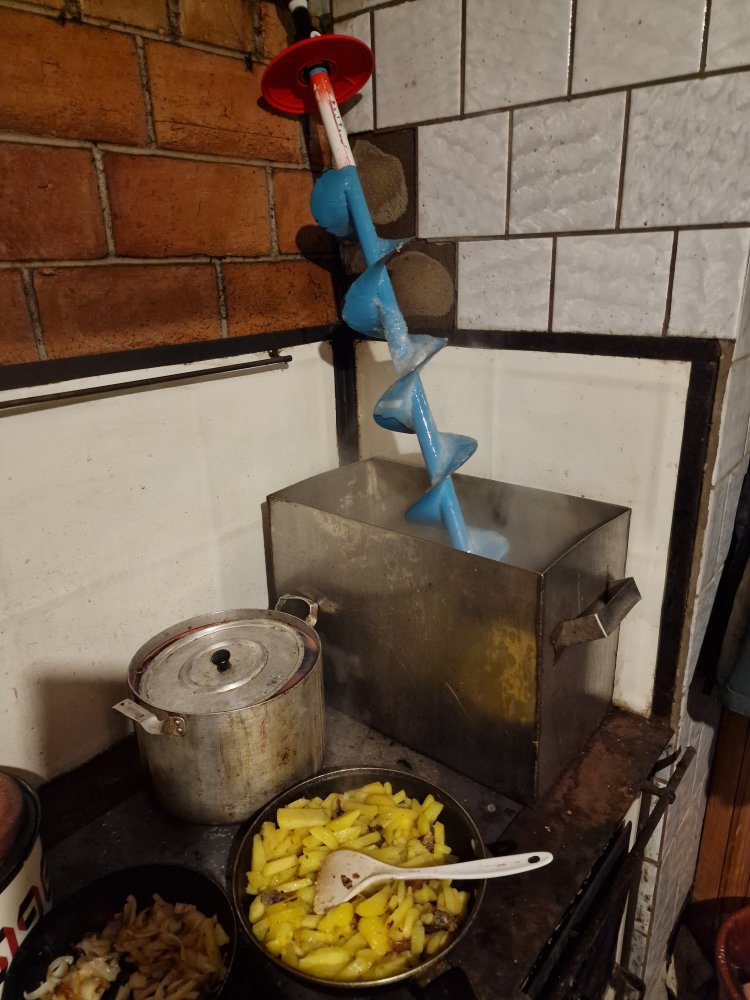 Ого, вот это хапужий ледобур с акуприводом, миллиметров 200 диаметр лунки?