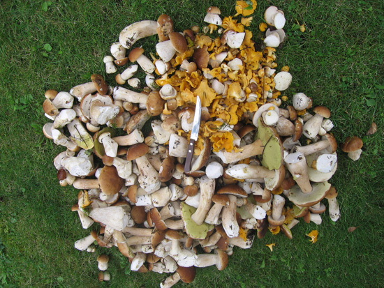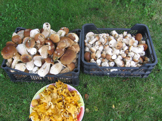 Боровички валом идуть, мы вечерком позавчера скатались опять, две корзины махоньких набрали, большие и не брали. Заготовки сделаны в этом годе, на соление осталось начикать и все.
