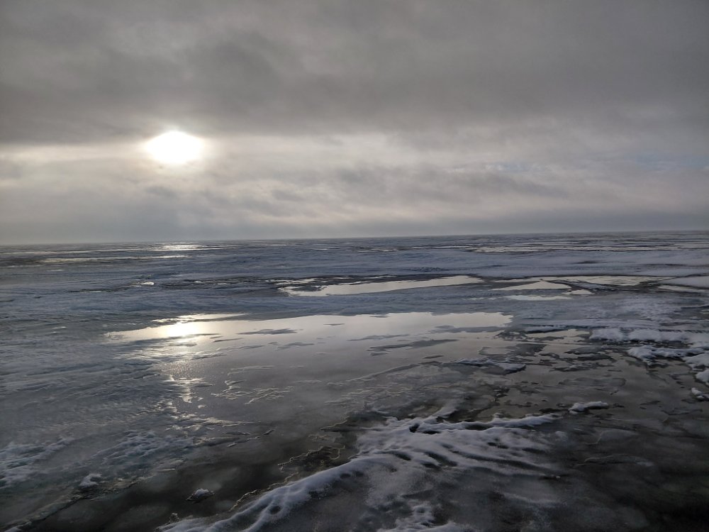 За день снег на льду напитался водой и перестал держать вес, нога проваливается до льда. Если прогноз по погоде сбудется, лёд откроется полностью.