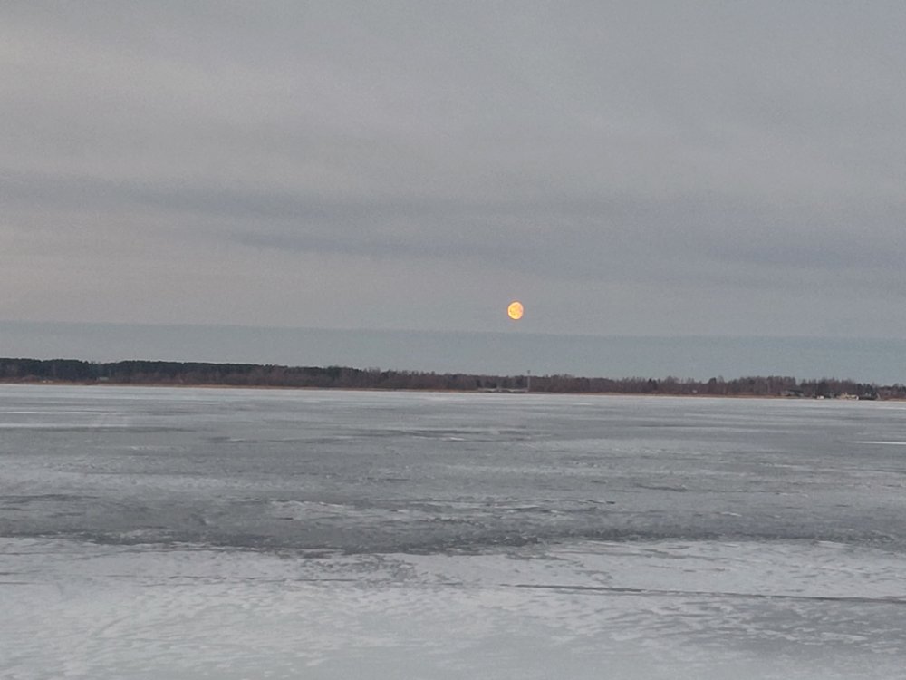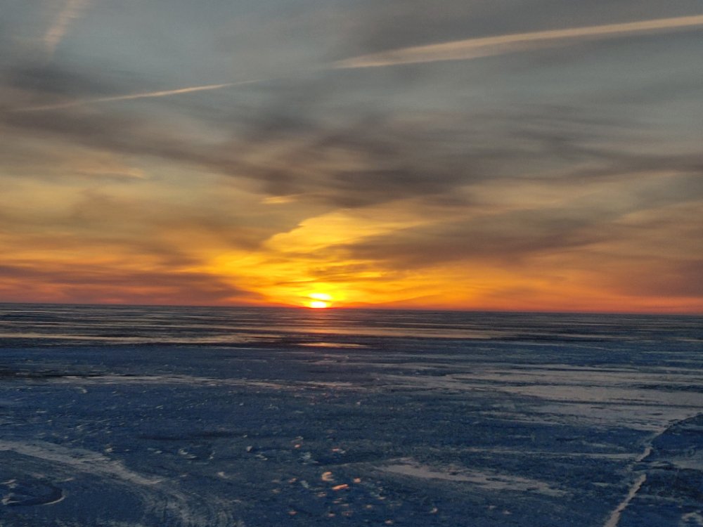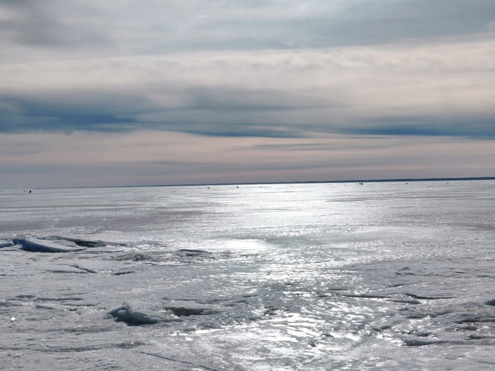 У нас утром -9, ясное небо и звёзды. Уже в Йыхви -4,5 и далее до озера столько же. На берегу ветер умеренный, но чем дальше в озеро, тем сильнее.