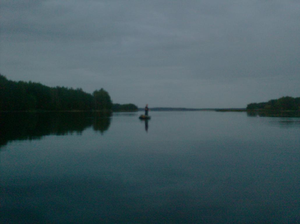 Особо сильно не расстраиваюсь по сему поводу и иду в четвёртый раз к ряду.Потеплело заметно,но ветер очень уж не устойчив,опять ни чего хорошего ждать не приходиться(из наблюдений отмазок).Да и за весь вечер три малюсенькие разномастные рыбёшки и усё.И ни чего не помогает.Ни свои каши,не магазинные,ни знание места,ни до тончайших деталий отлаженные оснастки,ни точнейшие забросы.Да хоть ты разбейся в лепёшку,рыбак с печки бряк,блин.Скоро вкус жареной рыбы забуду с такой жизнью,зазнайством одолеваемой:это мы не берём,это отпускаем,это не ловим;и так вот уж пол года не одной рыбы поймать не могу.Успокаивает лишь одно- Красиво,чёрт побери.И хоть как уже и положено к ночи определённо настраивается восток,но умеренный и не холодный.Расклёвываются подлещички,неторопливо текёт время,и всё-таки в пять утра,вот она,ни с чем ни сравнимая поклёвка,гулящего леща.Боец оказался достойный,в подсак с третьего захода удалось завести.Жизнь продолжается... Спасибо водохрону и всем удачи