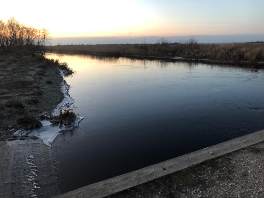 Уровень воды низкий, на берегах закраины, местами довольно большие. По воде гонит шугу, причём поначалу она легко резалась шнуром, но ближе к ночи смёрзлась и превратилась в льдины и ловить из под противоположного берега стало проблематично.