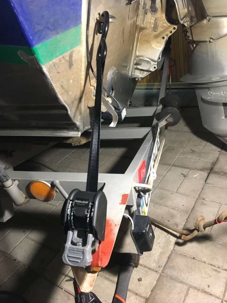 Всем привет ! Вчера получил из штатов посылочку с прижимными ремнями для лафета и к вечеру они были установлены . А сегодня проверил их в работе - все работает отлично , теперь фиксация лодки занимает секунды времени и смотрится отлично . Обошлось это удовольствие 60 $ с доставкой в Украину.