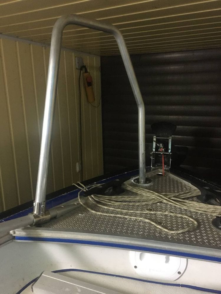 Давно обратил внимание , что на некоторых фоксах стоит носовой поручень . У меня его не было . Решил заморочиться и установить . Сделал эскиз , заказал поручень по своему эскизу из алюминиевой трубы (толщина стенки 3 мм ) . На али заказал фитинги для крепления . Сегодня все собрал проклепал алюминиевыми заклепками , думаю будет удобнее заходить в лодку , особенно малышне.