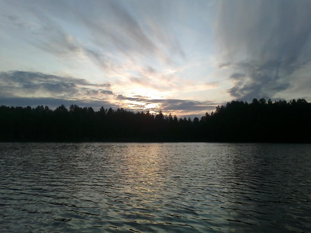 Заякорился,замесил прикорм,запулил уду,закидал прикорм,запулил вторую.А ветер всё крепчал.О том чтоб выставить третью и думать нечего.Уже даже очень нешуточно,после того,как два раза уды перехлестнулись понимаю,надо менять угол атаки; хоть не люблю я это дело,но деваться некуды.Угол изменён путём подтягивания перднего и перебросом заднего,Через буквально минут двадцать,процесс повторяю,пытаясь выставиться полубоком лица к ветру.Ни чего хорошего не выходит.Уже почти совсем стемнело.Терпение лопается,это не рыбалка,снимаюсь с якорей,обхожу место встаю к ветру спиной.Встал отлично,чуть близковато от прикормленного местечка,но миф о том что с лодки надо кидать далеко развенчан давно.Один раз в этом же месте,вставая против ветра,спустил верёвки,ночью ветер стих,встал штиль,и лодка начала плавать взад вперёд,не хотел тогда шуметь,подтянул верёвки и упёрся носом в прикормленное место так,что катушки оказались лишними.А улов выдался тогда отличный.И ещё пару раз точно,лещи успешно на этом водоёме,ловились в непосредственной близости от плав средства.Этим я себя успокаивал.Удочкам теперь то удобно,не удобно самому.Ещё немного и подпрыгивать вместе со стулом начну.Лето запоминающееся в этом году.А между тем поклёвок то нема.За исключением несколько раз ворования червячков,ни чего не происходит.Но надежда,она такая живучая,ни как не умирает.Тока чуть стало светать,как раз посмотрел три четверти третьего.И тут поплавок как ванька-встанька заиграл.Терпим.Наконец поплыл.Есть,приятная тяжесть на том конце.А не вдолге следом казус.Заброс,цепляю за траву,и рвётся не поводок,а основная леска;и я наблюдаю чуть не со слезами на глазах,как поплавок мечты,начинает своё плавание в небытиё.Жаль конечно;но всё что не случается,всё к лучшему.Могло быть хуже,хорошо не с рыбой.Да и третья уда сегодня не при делах,ремонтировать снасть не реально,поэтому замена.В пол пятого,ещё двушка,в интервалах между ними один чуть недолещ и чуть после ещё килошка.К шести становиться ясно,на леща надеяться более нереально.Я уже подпрыгиваю на стуле,удочки подпрыгивая дёргают за собой поплавки.Оставляю одну как есть,а второй думаю,чуть плотки для котофея надо подловить.Той всё непочём,клёв как на чёрных камнях.