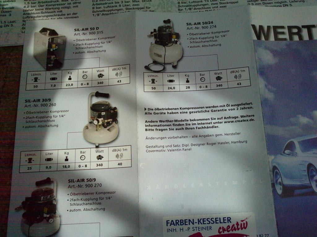 Лучше брать сразу с ресивером - 1203, 1208 - тогда аэрографу не нужен будет аэр-контроль - то есть сама машинка окажется попроще и подешевле. Первая. А там уж...Dmx85 писал(а):вот такой нормально будет для новичка???