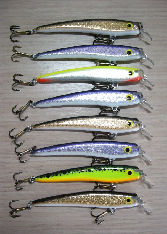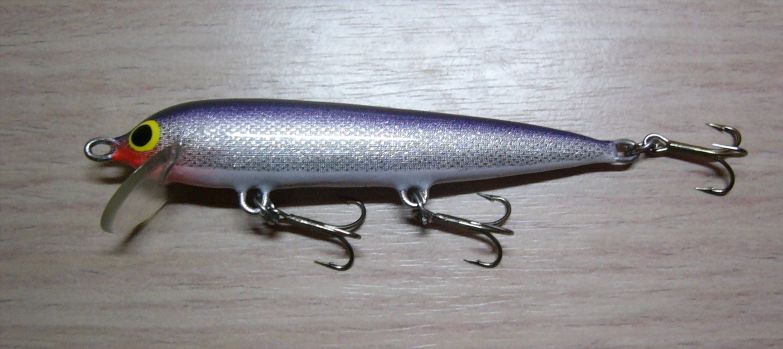 А у меня неожиданно уловистым оказался вот этот воблерок,за два обеда выловил 8 щучьих подростков. И даже будучи откушенным 1.5 (примерно) кг. щучкой благополучно всплыл через 15 минут и продолжил работу...