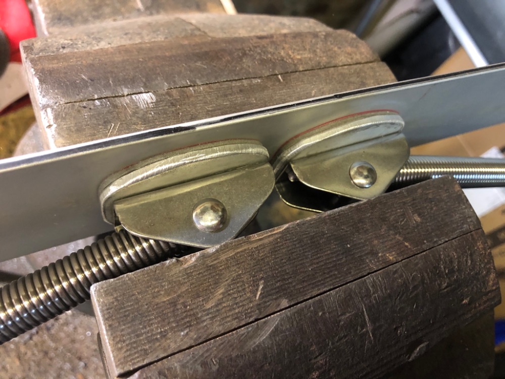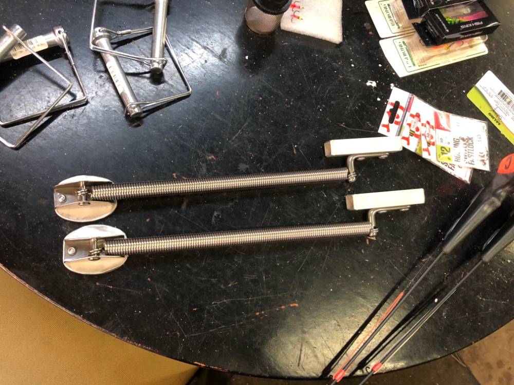 Пришли пружинные стойки для рундуков. Я не любитель дырявить корпус, по этому решил поставить одну сторону на двухсторонний тэйп. Другую прекреплю через квадратный профить. Пока сделал заготовки, примерил и заклепал.