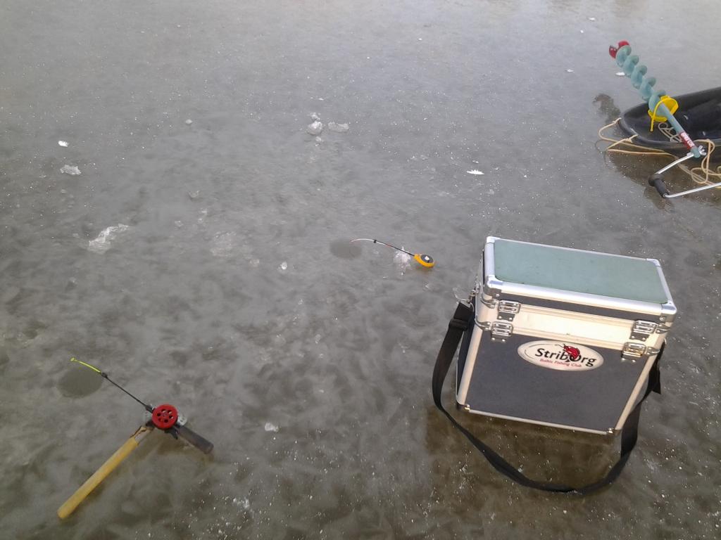 Лёд в проливе совсем без снега, сцуко скользкий. Для пробы пробурился в нескольких местах, лёд стабильно везде на расстоянии метров 50 от берега прим. 5 см. Стал макать балансы и вертикалки, один тычёк и всё.