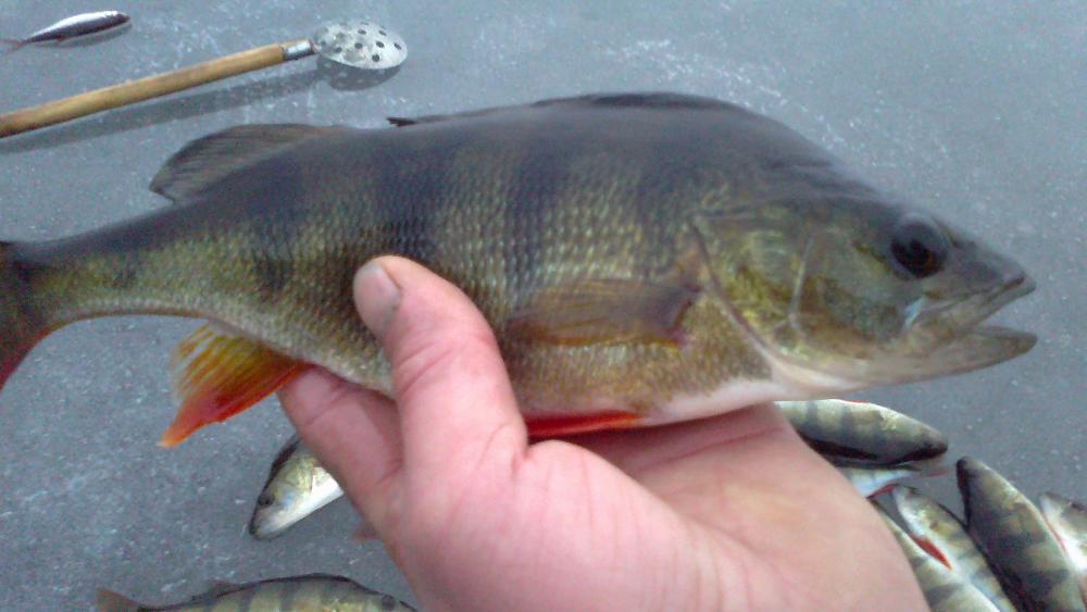Не задумываясь ни разу,как провести выдавшиеся свободные деньки,накидав в ящик зимних удочек и самое необходимое отправился на любимый водоём.Была это среда двадцать восьмое декабря.Понимая,все расспросы о ледовой обстановки ни чего не значат,требуется убедиться воочию.Зима,она как-будто и начиналась в наших краях и даже не единожды,однако установится ей основательно ни в какую не позволяли юго-западные ветра,постоянно подвигая её порядком выше наших широт.Припорошивший землю снег,добавил немного света в серые дни,но и скрыв при этом все неровности,а вместе с ними и промоины.Маленький минус лучше нуля,есть надежда на то,что верхнюю воду тоже чуть прихватило,в совокупности с оставшейся твёрдой водой можно попробовать и выйти на белое поле.Страшно,конечно,и без очков видно у камышей и берегов открытая вода,надо перепрыгнуть,но выдержит ли ближайшая кромка этот перепрыг,стою чешу в затылке... .И вот уже иду,оставив вещи на берегу,в руке пешня,удар-шаг,ещё удар,ещё шаг,максимум через раз.В разные стороны,во все три направления от берега.Толщина в районе семи сантиметров,но пробивается в полтора раза,явно структура льда нарушена.Таким макаром и добрался до первого острова.Вернулся за вещами,набурил лунок с два на четыре метра закормился,толщина льда показала в районе шести сантиметров,расширять поиски не отважился и уселся ожидать шевеления сторожка,переодически сменяя лунки.С обеда минус чуть усилился,опустившись наверно аж до минус двух,лунки стало прихватывать,редко прежде меня это радовало.За весь день,из девяти две отозвались дюжиной окушков и десятком плотвичек,радости было как у ребёнка,да и зимний день глаз порадовал.Вечер заканчивался жареной рыбкой,съеденой с большим удовольствием.