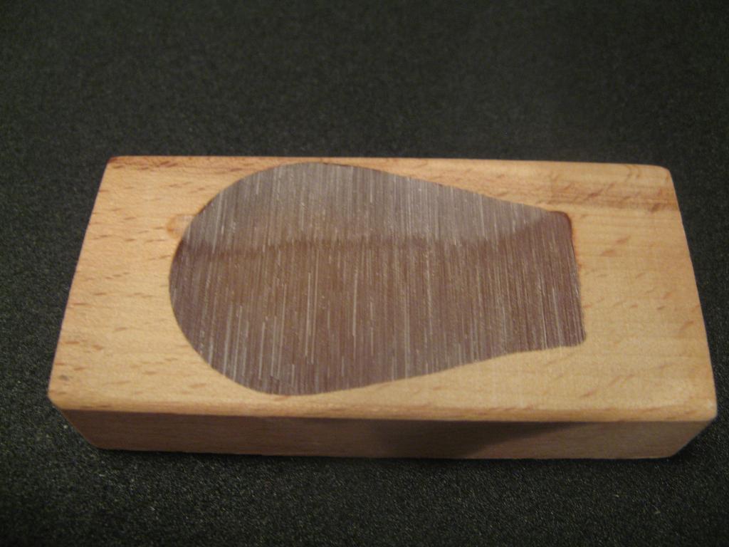 Так, оригинал, с которого срисовывал свой шаблон, имеет впереди, на загибе, толщину 3 мм, на донышке (на плоскости) около 2 мм. У меня же везде 2 мм.