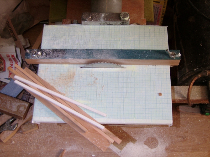 Доточил наконец свой новый воблерный нож. Для полного счастья не хватает концептуальной ручки. Хочу придумать ручку-трансформер, чтобы быстро перекладывать её с ножевой на пильную. На столик циркулярки наклеил-таки миллиметровку. Почему-то отнёсся к этой процедуре без должной ответственности, в итоге разметка легла с перекосом.
