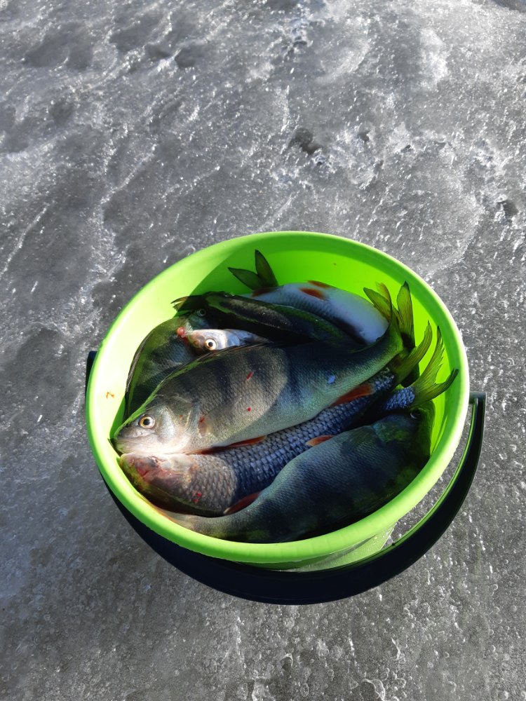 Сегодня хороший окунь в перемешку с плотвой 7 кг. В 8.30 закончил.