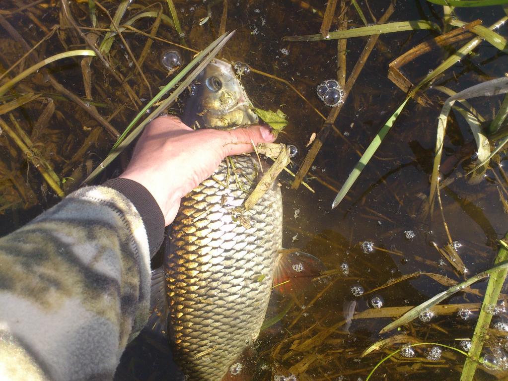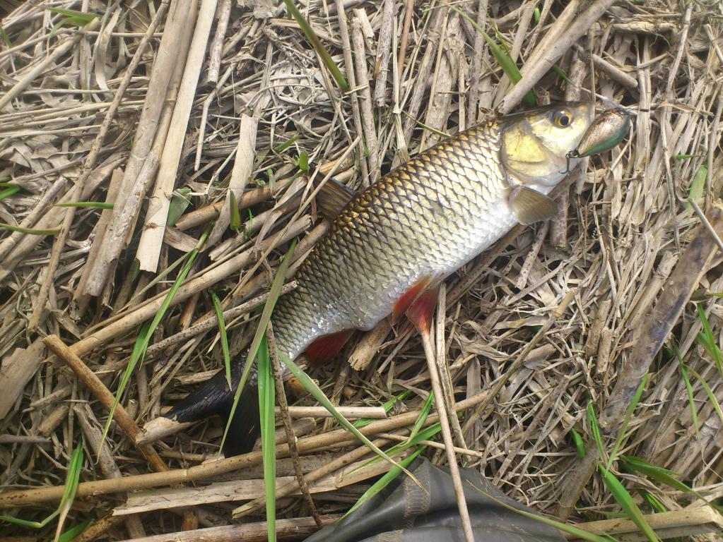 А нет,вот небольшенький соблазнился и не сошёлНу надо запечатлеть первого в этом году. А вот ты мог бы и позвать.И он позвал,я не знаю какую ступень в рыбьей иерархии он занимал,но похоже нерпосто позвал,а объявил общий сбор.В последующие пару часов я наверно сильно напоминал буйно помешанного.Я подсекал,вываживал,фоткал и отпускал, я проваливался в какие то ямы,но это меня нисколько не волновало.За качество фоток ,заранее сори.Нормальный фотик забрала жена,а с андроидом в одной руке,а прыгающим спином в другой,красивых фоток в воде не очень то наделаешь.В этом я убедился уже на первом достаточно крупном,ну полтора в нём точно было,он так красиво на травку в воде прилёг,а тут меню,хреню и держать неудобно.Вообщем надоело ему лежать,он крутнулся,боднулся и поплыл по своим делам.Потом уже на берегу это делал,самому не нравится,но селяви.