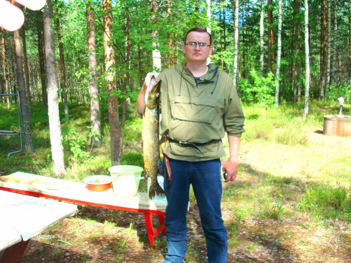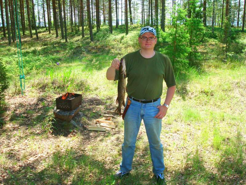 Всем привет! Отдыхали на Сайме 21-24 июля. Рыбалка была разнообразная. Сперва надеялись на хороший клев окуня, в прошлый раз неплохо его потаскали, однако с окунем было не очень. Зато щука проявляла активность. Исследовали различные острова с камышами, протоки и бухты. Нашли одно очень хорошее место - остров, с длинной полосой камышей, вокруг мелководье - 1,5 -2 метра и рядом глубины. С первого заброса у товарища хапнула щука, да так, что он её сдвинуть с места не смог. Она сделала мощный рывок, долбанула хвостом по воде и ушла восвояси с Mepps 3 в пасти, перекусила леску. Тут мы решили это место прочесать приманками. В результате у меня было 3 щуки. Все около 2-х кг. У двух из них на теле свежие следы ран. Причем по ширине "укуса" размер пасти сопоставим со щукой более 8 кг. Видимо она и схватила у Бориса. Однако мы её так и не поймали. На следующее утро тоже выходили к этому месту, однако была поймана только щука на 2700.