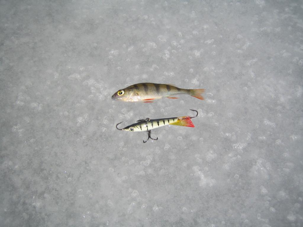 Опускаю мормышку – кто то сразу обожрал мотыля. Поставил малюсенькую мормышечку и выудил местного окуня. Чудские наноокуни по сравнению с этим экземпляром – МОНСТРЫ
