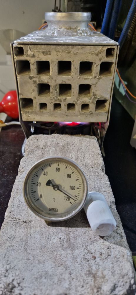 Врезал на быструю руку в вентиляцию, изначально пришлось принудительно включив вытяжку ее прогреть, так как дым пошел во внутрь, пару минут и все норм. Через 15 минут работы на выходе было 26 градусов при открытых воротах, на улице минус 5. Шумная только хрень, есть ещё места где можно поставить щитки для естественного протока воздуха, в нижней части труба нагрелась не более 35 градусов, но нижняя пластина вентиляционного отсека греется до 50, надо её заменить на стеклотекстолитовую. Проработав 2 часа забился выход горелки в баке, синее пламя сбилось на жёлтое горение примерно как 5 свечек и сильно коптило, температура упала до 16 градусов, но вентиляция справилась. Надо подумать как почистить бачёк для топлива я его уже отмачивал, но видимо недостаточно.
