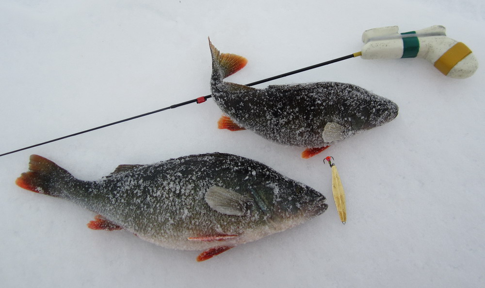 Вчера с переменным успехом снова полоскали железо, да напрягали окунька на больших глубинах (9-11м.). Окунь есть, но в основном мало активный и весь в пиявках, хотя "спит" он почему-то в 2-х - 4-х метрах ото дна. Свеже-пробуренную лунку как правило, приходилось разрабатывать некоторое время, чтобы последовала поклёвка. Но периодически приключались и небольшие раздачи.