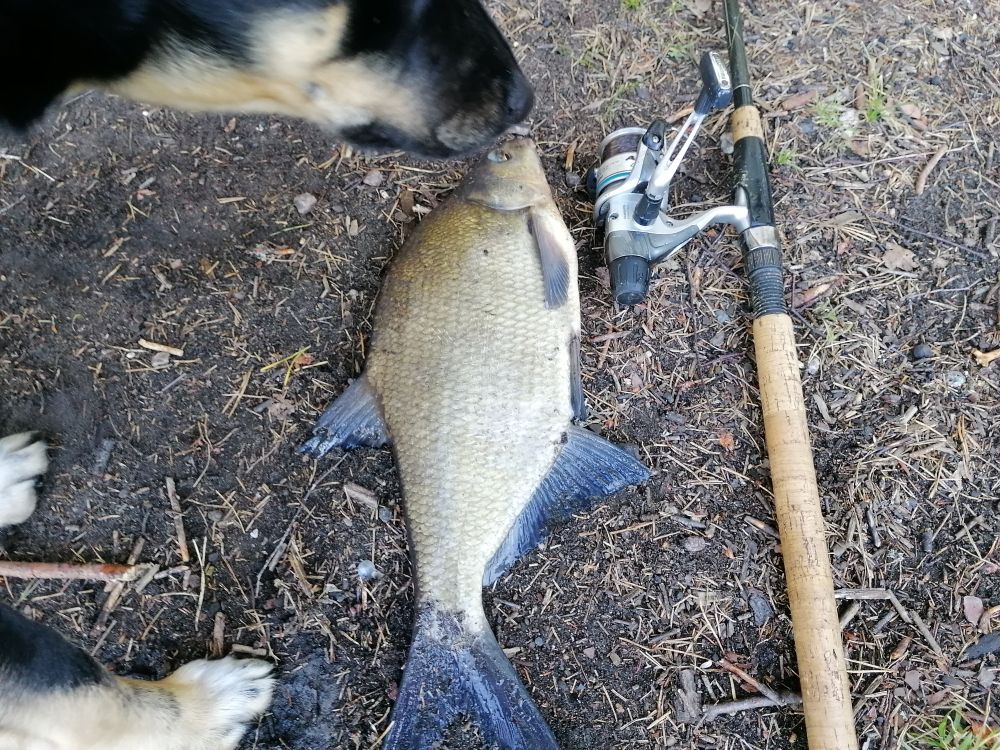 Достойное сопротивление, но не долгое. Подвожу к лодке - неплохенький лещик(1.8кг). В зачет!