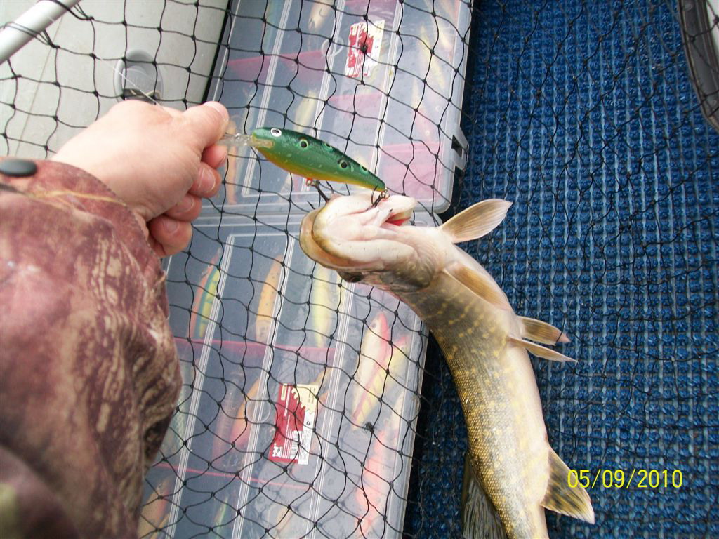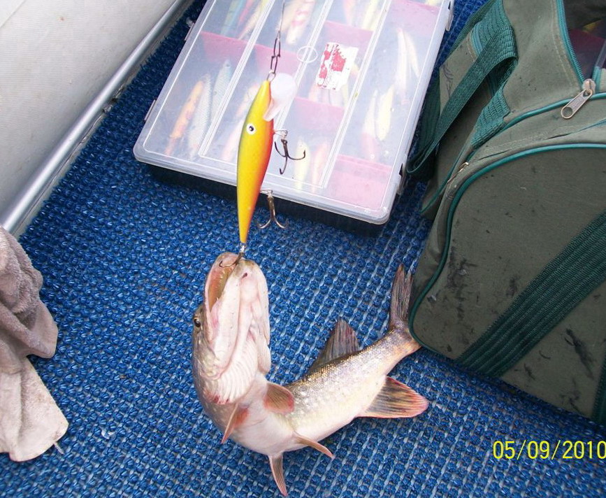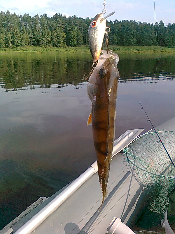 И улов не ахти какой...просто щука вся косая, поклевок 30 и все мимо. Ну хоть этот обрыбил мне глиссера.