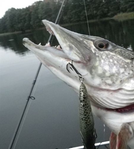 А промахи, пустые атаки на поверхностники, даже на отнюдь не маленькие джерки (15-18 см) - в порядке вещей, зрелищно, адреналина - ведрами, но чаще всего мимо . Поверхностные силиконовые жабы вообще превращаются в лохмотья на первом десятке забросов (если щука активна)