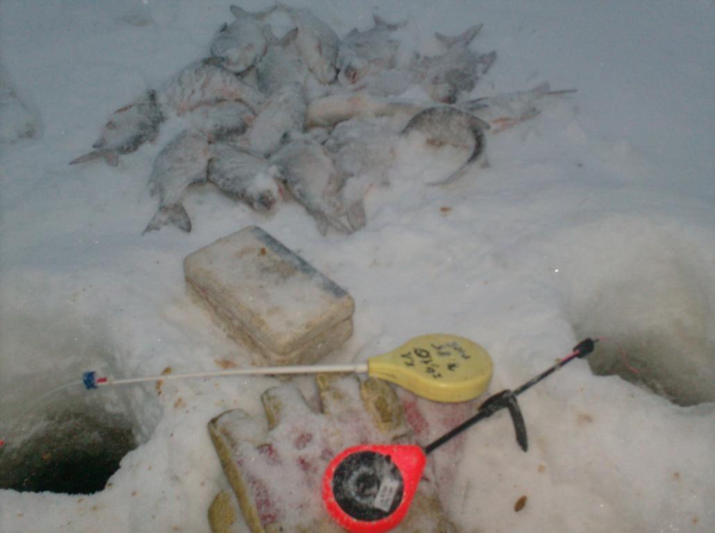 И было утро,и был я в Пярну.В пол седьмого выход на лёд.Место на взглд приглнулось,как оказалоь с глубиной 5.20.устраивает,решаю внезависимости от клёва провести не сдвгась всю рыбалку.Сверлю три лунки,так как ещё ни кого нема,раскидываю вокруг по возможности своё барахлишко,и опускаю первую кормуху.В Арсенале шесть удочек,две очень лёгкие(мармышки),две средние,и две которыми мож рыбов в нокаут послать,попади им по голове.Рыбки начинают потихоньку отзыватся,клёв не особо,но что радует,так эт размер,и это вполне устравает.