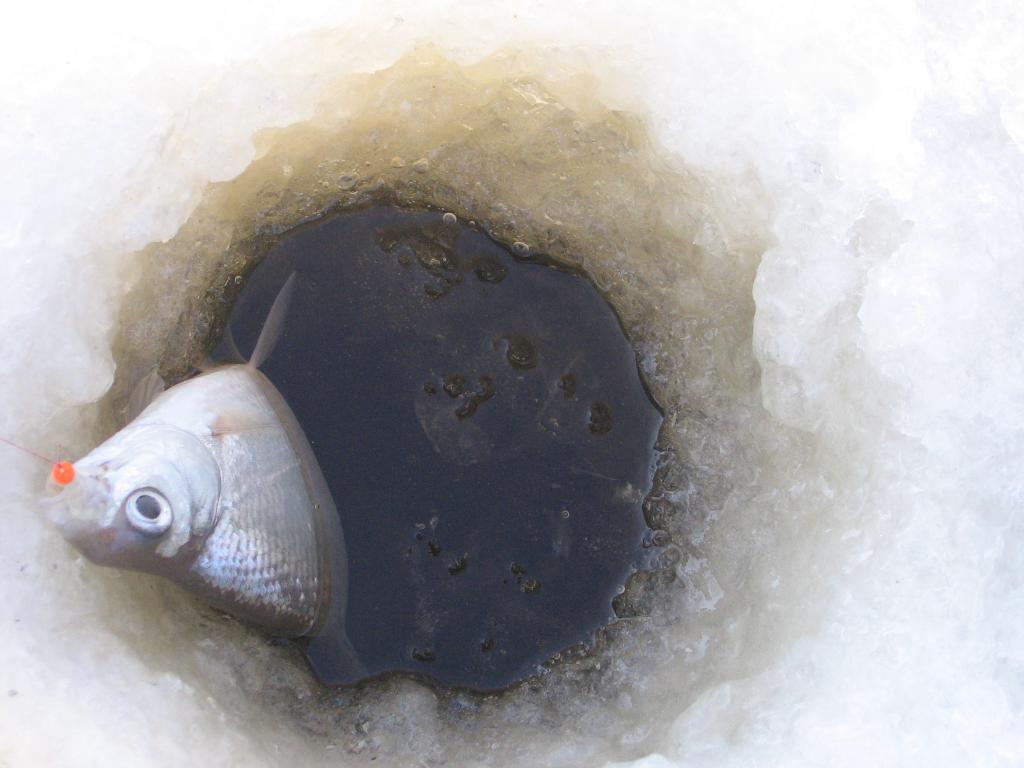 Наверное ради приличия,немного выслушав ворчания Григория,отправляюсь с его буром,обустраивать себе новую стоянку.Выбрав на мой взгляд этичное расстояние от Михаила,метров в 20 ниже,оббуриваюсь,глубина 5,10,устриваю безжалостный закорм(нодо уже и избавлятся,скока можно один и тот же прикорм таскать в ведре,с рыбалки на рыбалку),оставляю трохи на всякий случАй.И тишина,время идёт,идёт перепробование всевозможных мармых,через пол часика кивки начинают потихоньку подёргиваться,но результатов это не приносит,ещё через пол часика,возвращается мысля