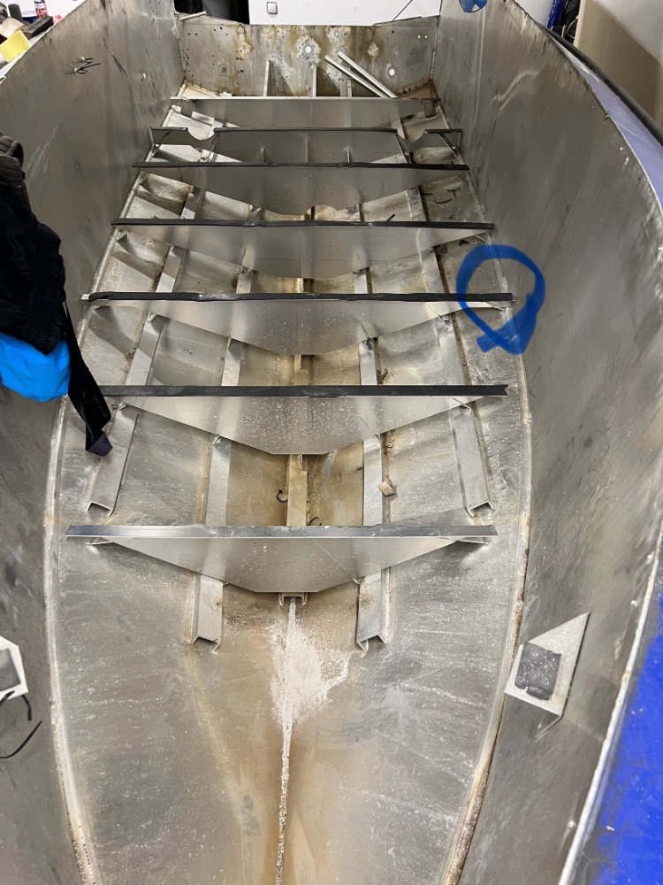 я так понимаю, что этот наружный шов заплатки на корпусе зачищать нельзя, из-за ослабления?