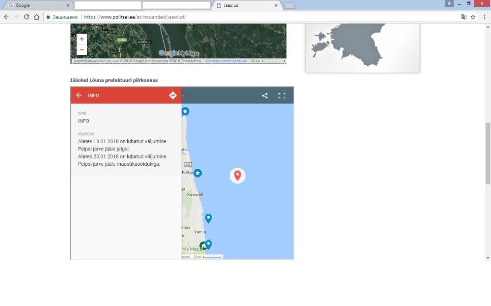 https://www2.politsei.ee/ru/nouanded/jaaolud/Выход на лед запрещен как пешком, так и на моторных средствах на следующих озерах и водоемах: