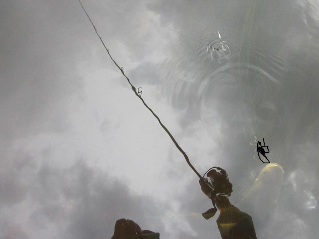 А он и вправду есть,только ареал его обитания несколько поменялся.Ага,вон ты где проявляешся,ну у нас и приблуда подходящая имеется.Ща мы его пощекочем.А первый опять маленький-разведчик бляха.Иди,доложи что дядька добрый и в плен не берёт.Закруточка вот одна покоя не даёт,как бы до неё докинуть.Докинул вроде-тук,и вдогонку дынц,ну с первым солидным-околокилошка будет. Хорошая тусовка у них тама,ещё несколько ударов и ещё одна околокилошка и всё равно прыгает.Значит пока не сильно боится.