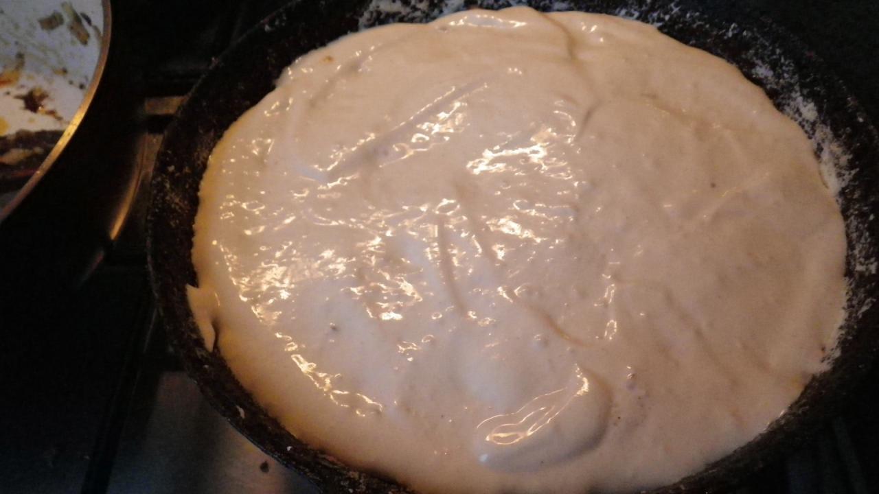 Через 3-4 минуты переворачиваем тесто на другую сторону. Ещё через 3-4 минуты всё готово.