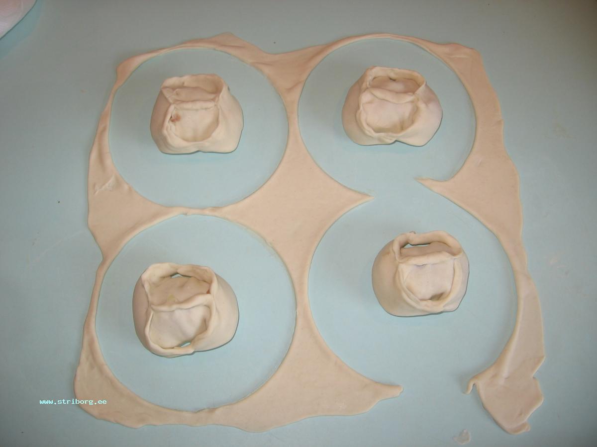 Проявив смекалку нашел выход,на приклеенном тесте вырезал круг,лепил,и отлеплял