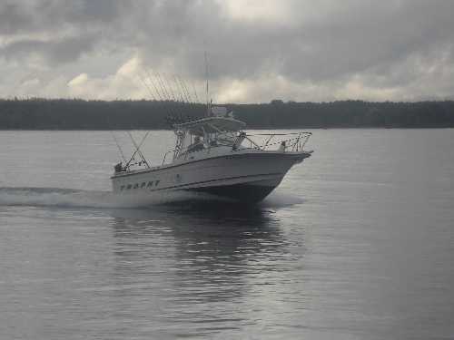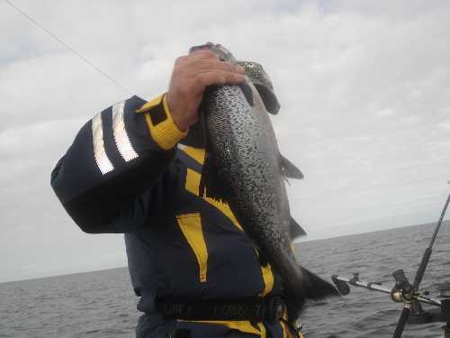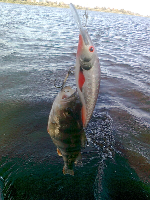 Вот наконец увидел настоящий воблер на лосося. На прошлой неделе тоже был там обкатывали новый катер, но клевало на оранжево-желтый с черными точками и было очень много холостых поклевок. Но когда поймал сига на кг., тогда понял кто постоянно срывает прищепки.