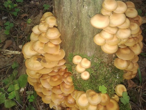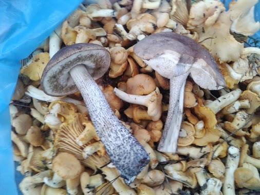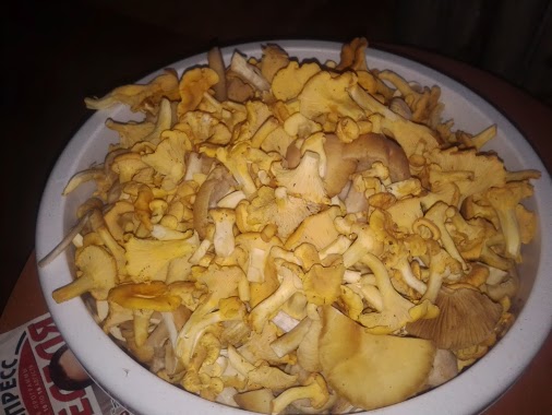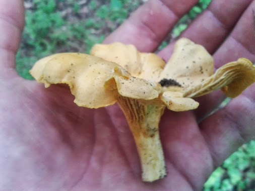 Сегодня увидел очень похожие с верху грибы на лисичек,срезал одну и убедился что такого гриба незнаю.Типерь у нас дожди идут каждый день,лисички которые растут ближе к болотам светлее немножко имеет окрас. И сверху принялза лисичек.