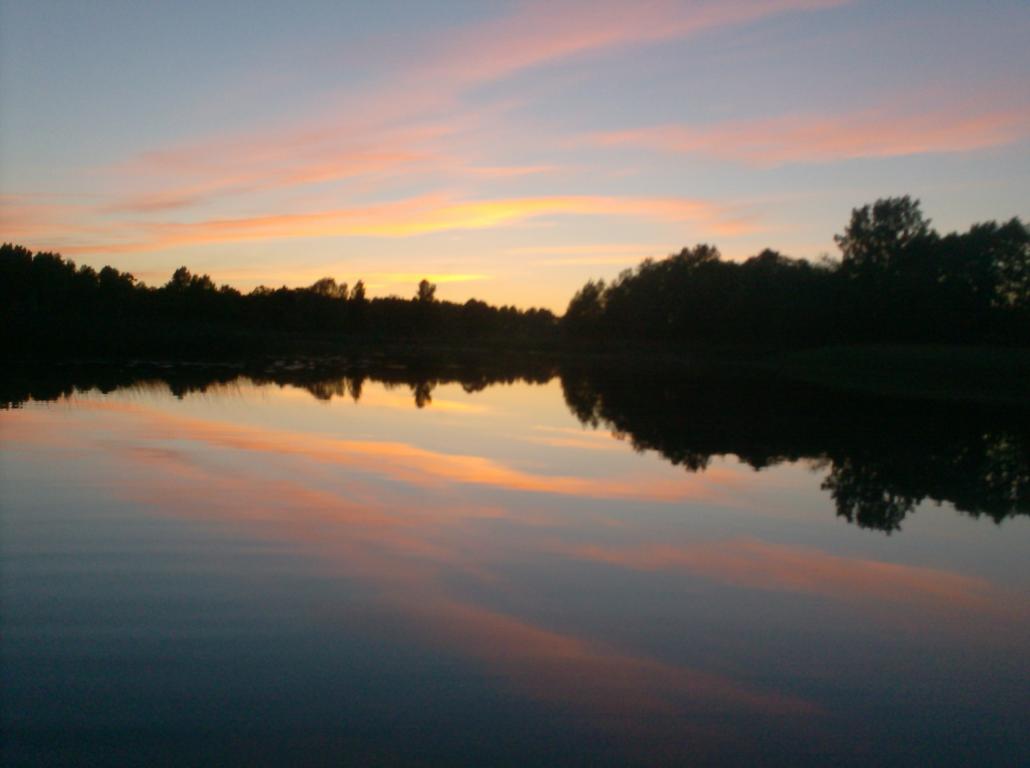 В понедельник отправляясь опять в небольшую командировку,так сказать,захватываю с собой удочку,ведь дом где коротаем ночи,находится прям впритык к берегу,И хоть время остается по вечерам всего нечего,почему бы не спробовать.Речушка оказалась непредсказуемо подходящей для рыбалки.Каждый вечерок,часик,а то и два,выдвигаясь всё далее и далее,можно сказать по нехоженным берегам,обнаруживаются окромя основной не большой глубины,красивийшие извилины,островки,отмели,ямки с удивившими меня глубинами свыше двух метров,одно местечко с обраткой по противоположному бережку.Речка кажись под названием Лииви,и хоть довольно известная,как-то не доводилось на ней рыбачить,возвращает меня в прекрасное время юности,тогда полюбившуюся речку Энге.Так же бродя тогда по берегам можно было наткунся на всевозможных рыб,что и случалось,но тогда рыбалки успевали совмещатся и с костром,и с ухой,и с гитарой,и с ухаживанием за юными и прекрасными принцессами.Ах как давно это было,но в сердце живо.Но вернёмся к настоящему,что удалось обнаружить-красота речушки,познакомился сплотвицами,такими же красивыми,как и сама речка,но думается тама проживает и множество других рыб.Хотелось бы поделится с вами друзья некоторыми фото,пожалуй более красочно они опишут эти красивые места,чем буковы. Ну вот так,если в кратце.А уже в эту субботу средь ночи втихаря,шмырк из дома на любимый водоём.Где вдвоём с другом объявляем охоту на линя.Погода на пять с плюсом,у меня поклёвывали краснопёрочки малюсенькие,у друга бобры,к пол десятому сдались,мы.Вообщем похоже уловистых рыбалок вам друзья от меня не дождаться