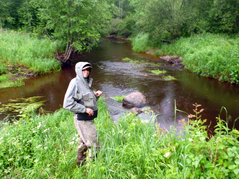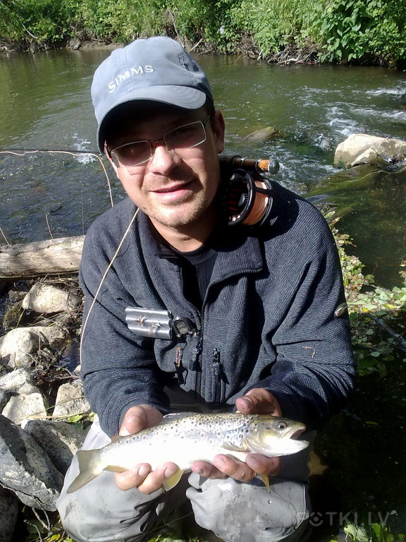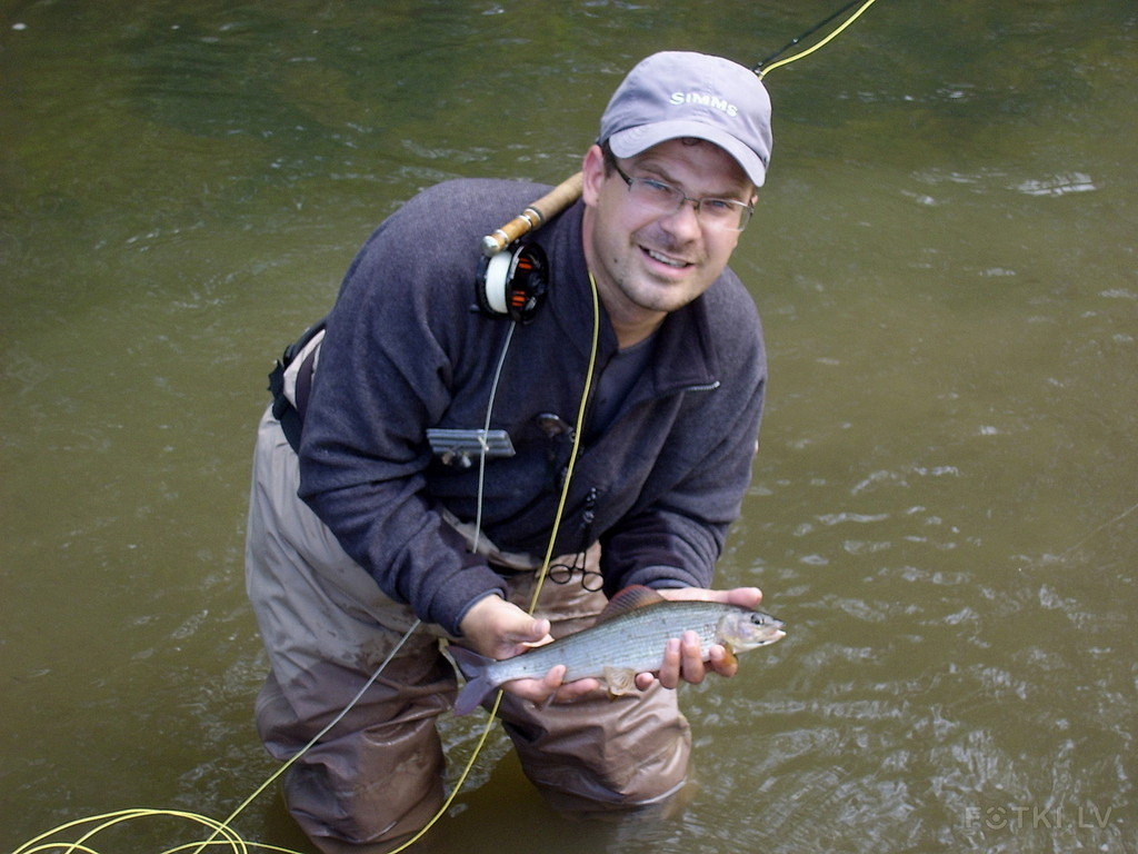 Утром, ну или если быть точным то уже днём, собрав пожитки решили переехать куда подальше. Покатались, потыркались и наконец пристали к местечку вроде персрспективному, но уже на другой реке. Опять неторопясь, но это не про Военного, разбрелись. Военный же улетел сломя голову куда то. Может знал чего а может предчуствовал? Глубоко на речке, но на противоположном берегу каменистые выходы с травой. Вот их то я и стал облавливать новым воблерком. Может на пятом забросе рыба села с таким всплеском, что я подумал будто ненароком попал на жереха случайно. Повизжал фрикционом, повозил вкруг себя весомую голавлиную особь и не снимая с воблера быстренько отнёс сие чудо голавлиного происхождения к Андрику на фотосессию. Быстренько в перемешку с охами и ахами засняли и под съёмку на видео так же быстренько отпустили в реку. Решаю закрепить результат и через минут пять ещё один монстрик вяжеться на воблерок. Чутка поменьше, но задвушный точно. Отпускаю стангами не беря в руки. Да и в руки такого опастно брать. Если вертанёться, то обязательно воблер куда-нибудь загонит и это, куда-нибудь, наверняка окажеться твоей рукой. Затем ещё несколько поклёвок, пару килошничков и всё . Стас тоже даром времени не терял. Изловил пару щукасов, одну из которых я видел и пару башковитых голавлей. Как то вот так мы и завершили рыбалку. Не то Андрику, не то Стасу вдруг по делам понадобилось ехать в Ригу и вод ведь незадача, в Ригу нужно одному, ну максимум двоим а едут все!