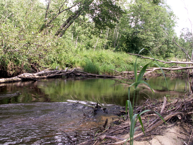 Воды в реке практически нет. Просто форелевая канавка. У меня на пути небольшой перекатик с множеством островков и струек между ними. И началось! Началось за всё, что было пропущено и упущено. За минут десять я поймал двух щупачков и штук пять голавликов. Не могу сказать, что больших, лиш один был грамм под восемьсот, но это было что то! Поклёвки ударные, погони, выкрутасы всякие, вобщем самый бальзамовый "БАЛЬЗАМ" на душу! Рыбу я отпускал, ведь в переди меня ждут места с жирняками. К чему это детоубийство, да и до вечера ещё вроде далеко. Рыбу снимал не беря в руку стангами прямо в воде. Возможно всему дальнейшему пустому маршруту была виной малая вода, может ещё какая то напасть, но после небольшого участка переката я поймал только щучку около полторашку и видел с пяток поклёвок заполкилошных и подкилошных голавлей. Вернулся уже тёмной ночью а рыбы в лагере нет. Стас вколол несколько окушков незаслуживающих внимания а Андрика тарпоны видать из-за малой воды слиняли в более глубокие места. Пришлось кормиться всякой домашней снедью и желающим пить чай.