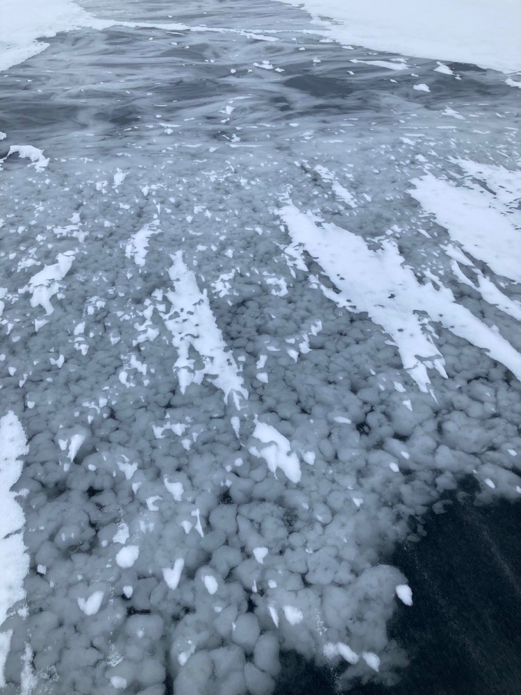 В прошлый выезд лёд был абсолютно разный: прозрачный, под снегом, мутно белый, узорчатый, полосатый