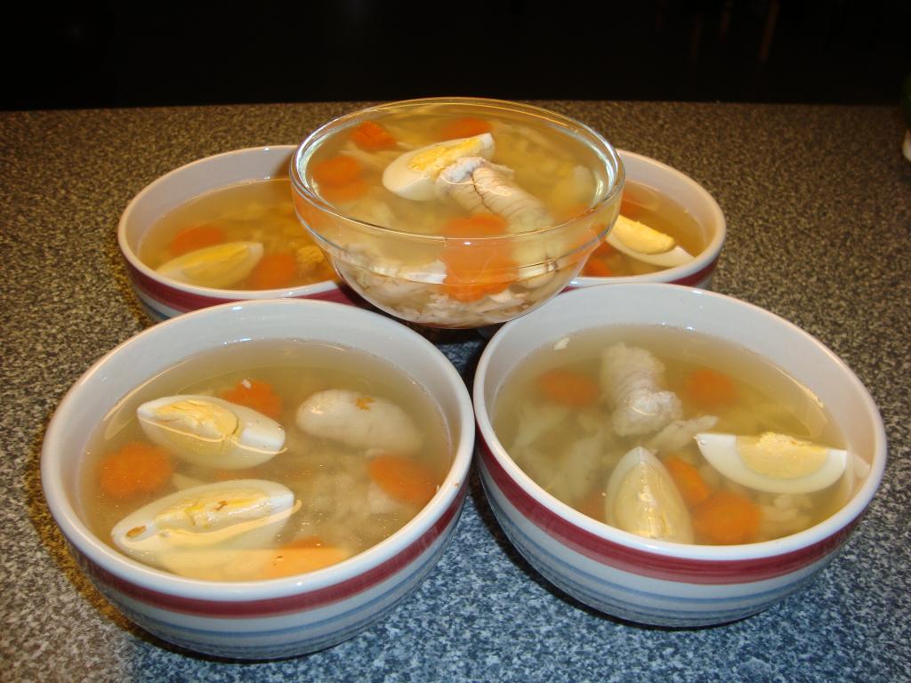 с варёным яичком и марковочкой . Думаю , что рецептуру выкладывать не стоит этих блюд , уж больно оно известны и просты .