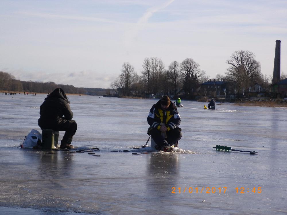 дорога до Пярну можно сказать в отличном состоянии. домчался без затруднений. Народ уже присутствовал. Пошёл на зачищенные точки. А там уже рыбачок стоит, на одну точку удочку поставил, на второй сам сидит. Ладно, прошёл дальше, расчистился на всякий случай, вдруг палатку ставить. Первую рыбку быстро поймал. Потом сход в лунке. С неба крупа посыпалась, да и ветерок есть. Не сильный, но есть. Ставлю палатку. Сразу как то уютнее стало.