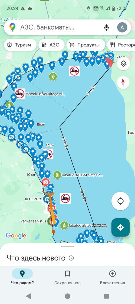 Уже на берегу заглянул в Гугл карту, а там красных участков не стало. Озеро открыли полностью.