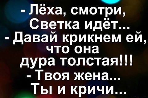 Муж с женой дома занимаются ceкcом, утром сосед, старик дядя Саша, соседу говорит: -Слушай сосед, вы ночью когда c@кcом занимаетесь, ваши крики и стоны по всему дому слышны, делайте как то потише! -А как потише? -Рот жены скотчем залепи что-ли! Ночь, муж скотчем заклеивает рот жены и занимаются c@кcом, после первого раза кричит -Дядь Саша, так хорошо? -Да! После второго раза: — И так хорошо? -Да! И так несколько раз ! Старик нервно орет -Убери ты этот скотч со рта жены! -Почему? -Потому что весь дом думает, что ты меня @б@шь!