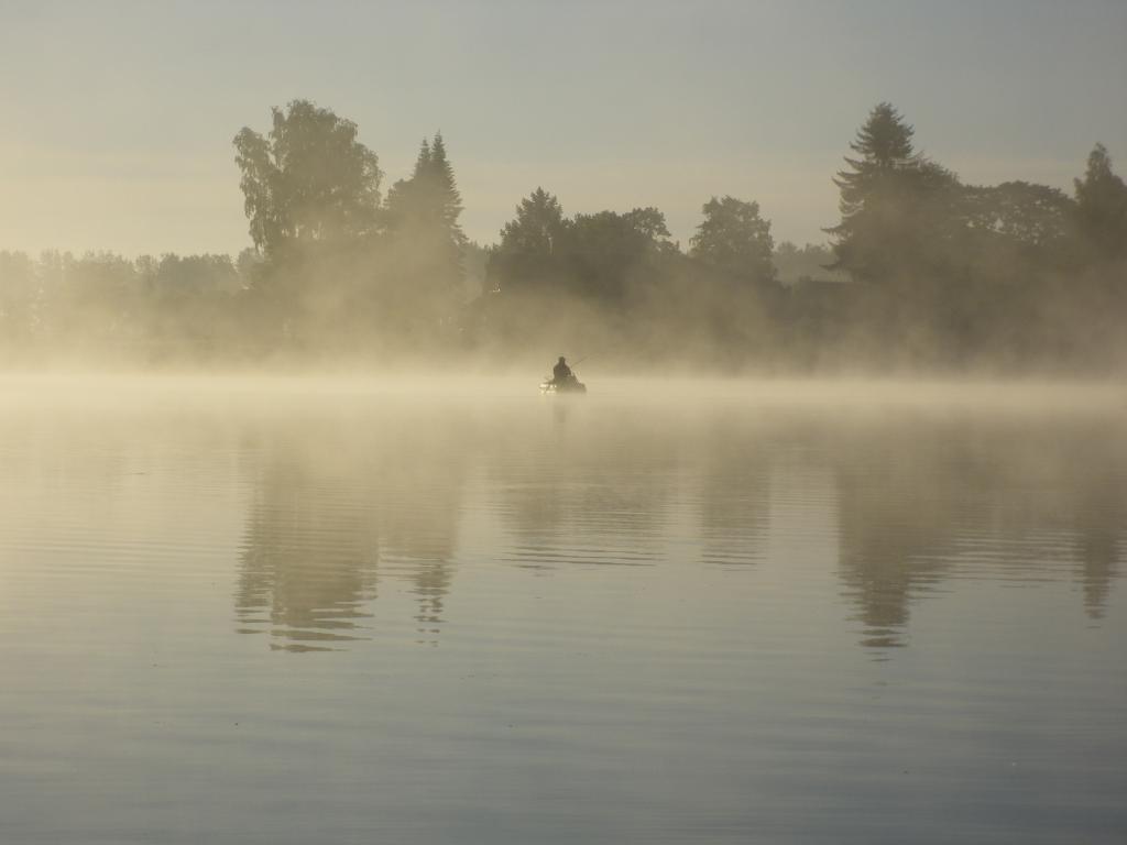 По приезду были удивлены кол-вом машин. Которые судя по стёклам ночевали тут с пятницы. В тумане с берега проглядываются очертания лодок. Но видно, что червячат. Ясно. не конкуренты.