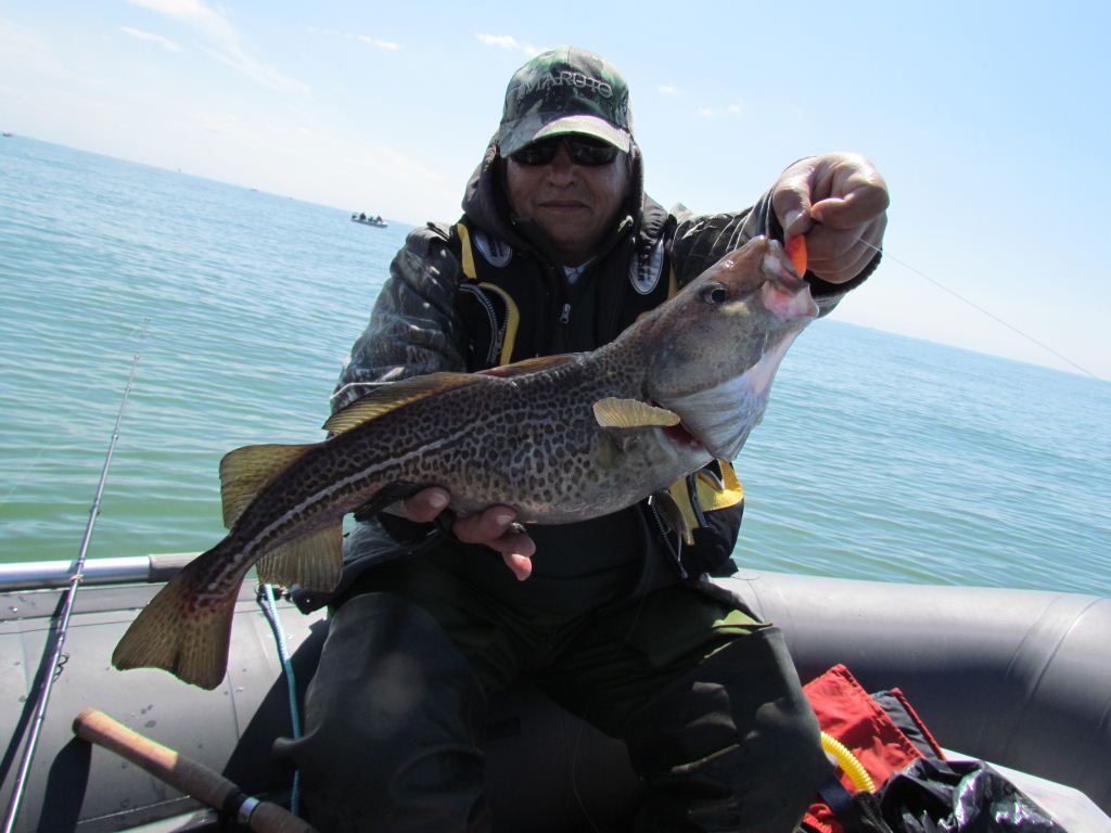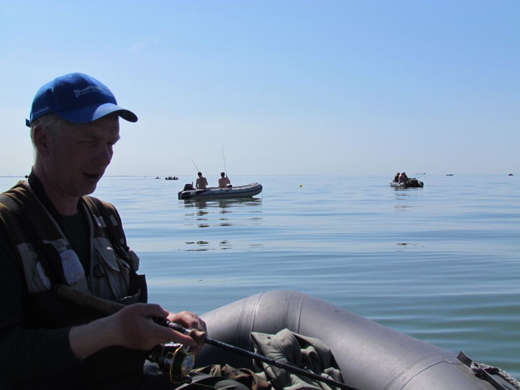 и бельдюга, и камбала и главное, что всё это на джиг. Изловили с пяток рыб по два кило и устав от прессинга, ушли подальше. Опять то откровенная мелочь, то вдруг начинает проскакивать приличная рыба. Ветер фактически стих и переходы стали как комфортными так и безболезненными для пятой точки. Выполнив норму а это большое ведро на , да не знаю я на сколько литров, одно могу сказать, что оно действительно большое и таз приличного литража, решаем, что для первого дня пожалуй хватит. Вот и лодок уже на воде не видно все ушли в берег, на глис и на точку сброса.