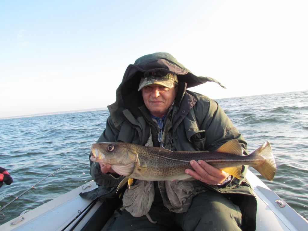 Точка просто забита рыбой, что отчотливо видно на экране кахалота. Начираем бросать и буквально сразу наши силиконки атакует, атакует Балтийский Тарпон, ну или сельдь а точнее салака, но сельдевого размера сантиметров по 22 - 25. Ужас сколько её под нами и на экране кахалота. Силиконки с джиг головками буквально не могут провалиться сквозь протный косяк рыбы, вершинки спинингов дёргаються а руки автоматически делают подсетки. Начался спиножоперный приём на борт забагреной салаки. До вечера её не сохранить в таком тепле и рыбу выбрасываем обратно. Если удаёться пробиться сквозь стаю и достигнуть дна, то почти без пустых проводок садиться тресочка, но и тут засада, она вся просто мизерная. На стаю фактически сельди, нападает меньшая, но более хищная тресочка. Вкалываються рыбки 200 - 300 гр. изредка на пол кило и слегка поболее. Вроде и клюёт, и весело, и не скучно, но ведь мы сюда не за этим приехали. Слеглка побаловавшись решаем идти с третьего на пятый к.м., да и лодки там тусуються. Мы собственно на лодки не ориентировались, просто приблезительно в том районе находиться серьёзный хрящик а если есть хрящик, то будет и рыба. Ну а лодки, так они тоже все с жопсами и забитыми точками.